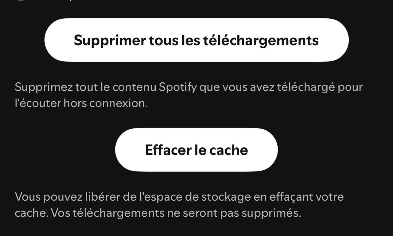 Attention : Cette opération va effacer toutes les musiques téléchargées sur votre appareil, mais vos playlists personnalisées en ligne resteront intactes.